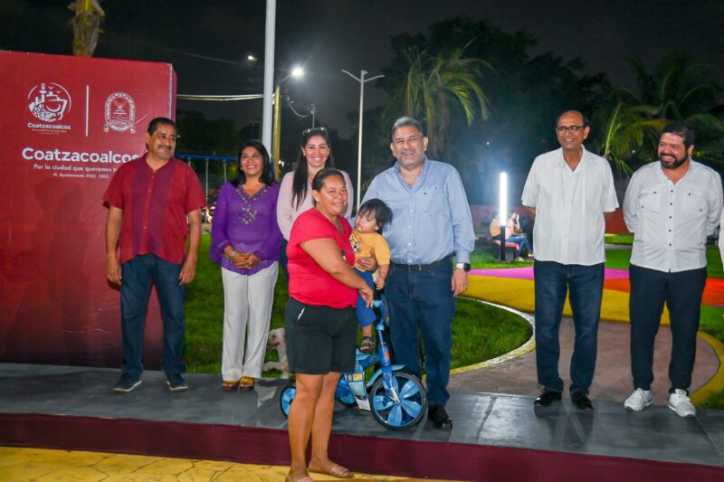 “Del parque inseguro que existía antes, hoy no queda nada. En su lugar tenemos un espacio colorido, alegre, amplio, digno y seguro”, expresó la jefa de manzana Reina Dimas Alfonso, al alcalde de Coatzacoalcos, Amado Cruz Malpica, durante la inauguración del espacio multideportivo ‘Progreso y Paz’.