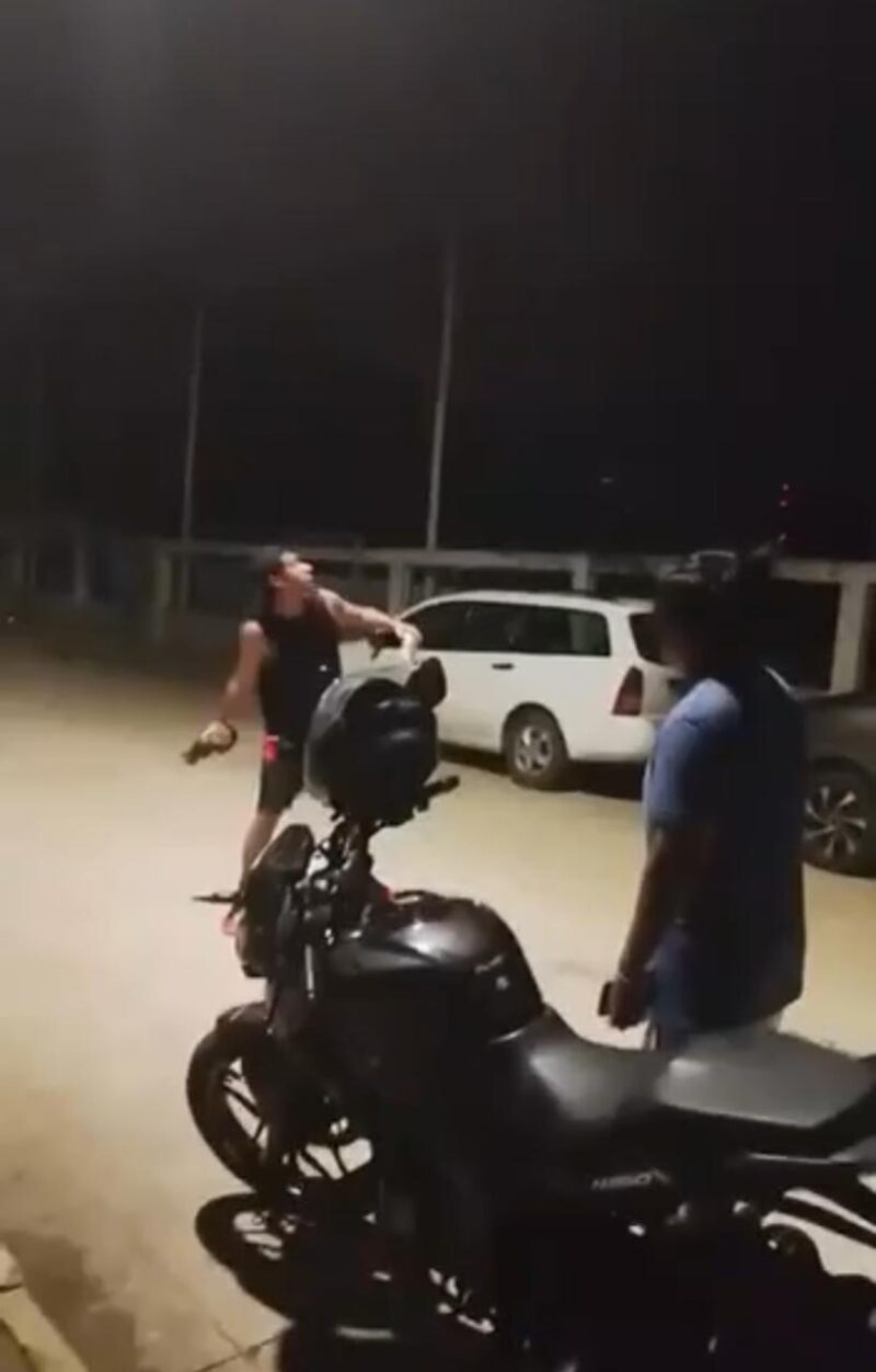 En el video se puede ver un varón con short y playera sin magas negras, así como tenis con tonos rojos y la gorra hacia atrás, el tipo, arroja al gatito luego de ser animado por sus compañeros de parranda.
