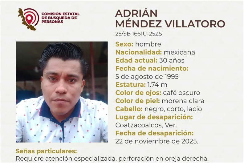 La Comisión Estatal de Búsqueda reportó la desaparición de un joven de 30 años de edad en Coatzacoalcos, al sur del estado de Veracruz.