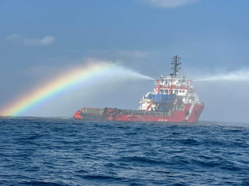De acuerdo con reportes de pescadores y personal que navega en la zona, el barco observado en altamar cuenta con equipo de dispersión y recolección de hidrocarburos, el cual se utiliza para contener y retirar residuos petroleros flotantes. En la imagen captada en el área se aprecia cómo la embarcación rocía agua a presión, una técnica que suele emplearse durante las maniobras de limpieza o dispersión controlada de contaminantes.