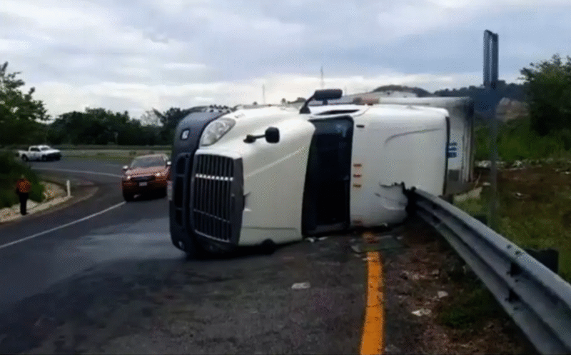** La pesada unidad buscaba incorporarse a la autopista Villahermosa-Coatzacoalcos cuando perdió el control en la denominada “curva del diablo”