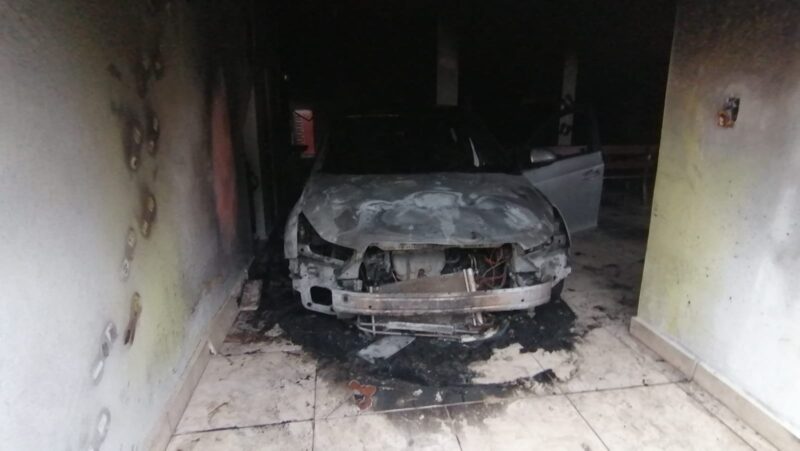 El fuego arrasó por completo con un automóvil Cruze modelo 2011, las llantas se derritieron se quedaron solo los cables, el radiador se cayó por completo, pérdida total de la unidad.
