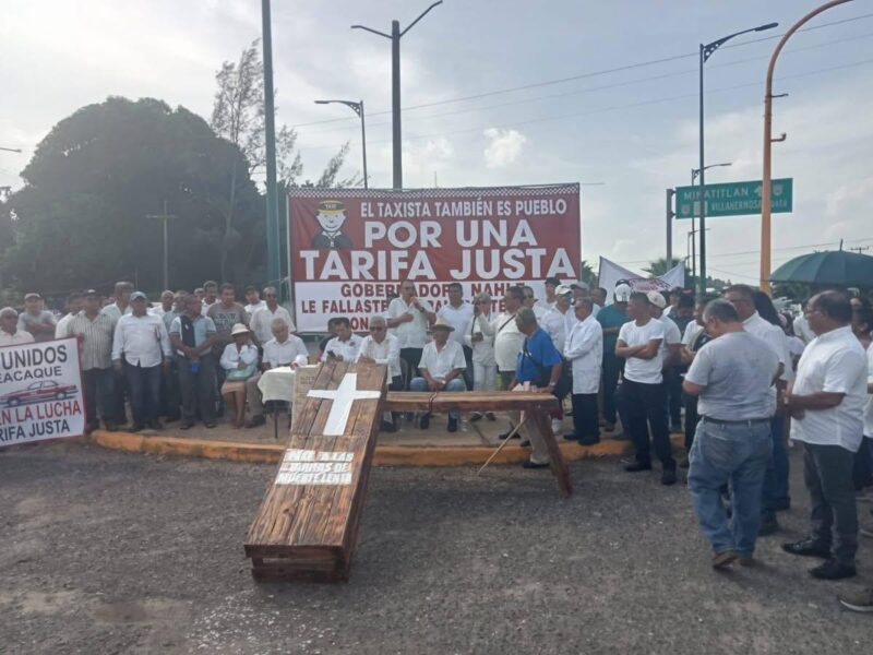 Un ataúd, lágrimas simbólicas y un mensaje claro: el oficio del taxista agoniza. Así fue la escena que se vivió esta mañana frente al C4 en Cosoleacaque, donde decenas de ruleteros de Minatitlán, Zaragoza y el mismo municipio convirtieron la Carretera Transístmica en un escenario de protesta con tintes teatrales.