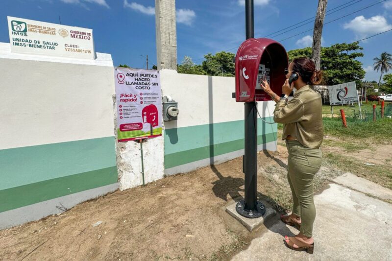El dispositivo se encuentra sobre la calle Florentino Domínguez, a las afueras de la Unidad de Salud IMSS-Bienestar, y permite realizar y recibir llamadas gratuitas a cualquier punto de la República Mexicana, tanto a números fijos como móviles.