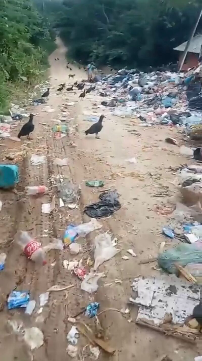 En uno de los videos que circulan ampliamente, se observa un camino que conecta la cabecera municipal con comunidades de la zona rural, donde una unidad recolectora de basura fue abandonada por personal de limpia pública, dejando gran parte de los residuos esparcidos sobre la vía. La situación no sólo obstaculiza el tránsito vehicular, sino que ha generado malos olores, proliferación de animales y un evidente foco de infección para quienes transitan diariamente por el lugar.