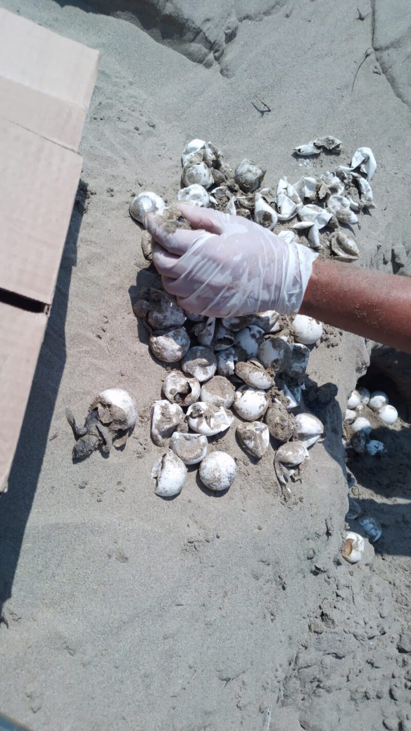 Dijo que no pudieron nacer todas debido a que la arena se compactó por las lluvias recientes y porque esa zona es un lugar de tráfico elevado de personas, las que al pasar encima el nido la compactaron.