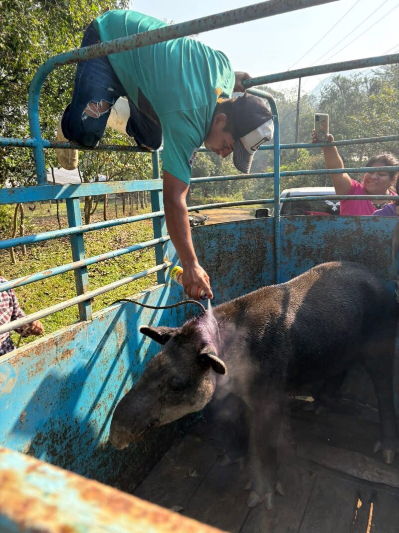 Autoridades del municipio de Las Choapas informaron sobre la atención brindada a un ejemplar de Tapir centroamericano, localizado recientemente en el ejido Coatzintla, especie considerada en grave peligro de extinción y protegida por la NOM-059-SEMARNAT-2010.