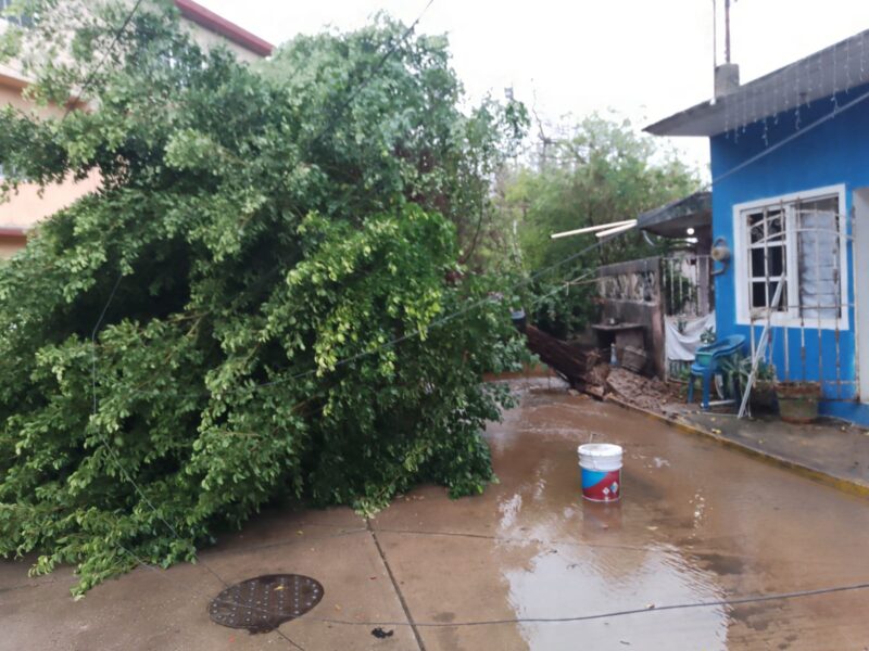 El reblandecimiento de la tierra por las primeras lluvias registradas en esta ciudad, provocó la caída de un árbol de Ficus Benjamina, que a su vez dañó la tubería de agua de tres pulgadas y dejó sin Internet a varias casas.