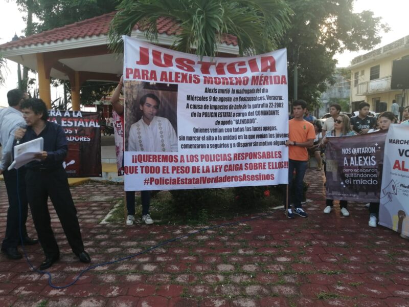 A 8 días del ataque de elementos de la Secretaría de Seguridad Pública (SSP), contra Alexis y Raúl, padres, amigos y ciudadanos, marcharon este miércoles para exigir justicia en Coatzacoalcos, por el aberrante asesinato y la detención arbitraria. Entre su duelo, el padre de Alexis Moreno indicó que aún falta que caigan más culpables.