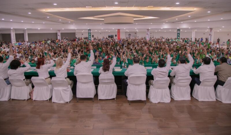 Finalmente, la asamblea aprobó por unanimidad el rechazo de la propuesta de la administración de PEMEX en torno al proceso de la revisión contractual, apoyando, respaldando y confiando en las decisiones que tome en la mesa de negociaciones el dirigente nacional del STPRM. Luis Ricardo Aldana Prieto en la defensa de los intereses, derechos laborales y el logro de un salario digno justo en beneficio de los trabajadores petroleros y sus familias.