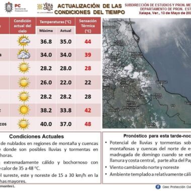 Los acumulados se mantienen de 5 a 20 milímetros, aunque algunos modelos de pronóstico sugieren que podrían ser mayores a los 50 o 70 milímetros.