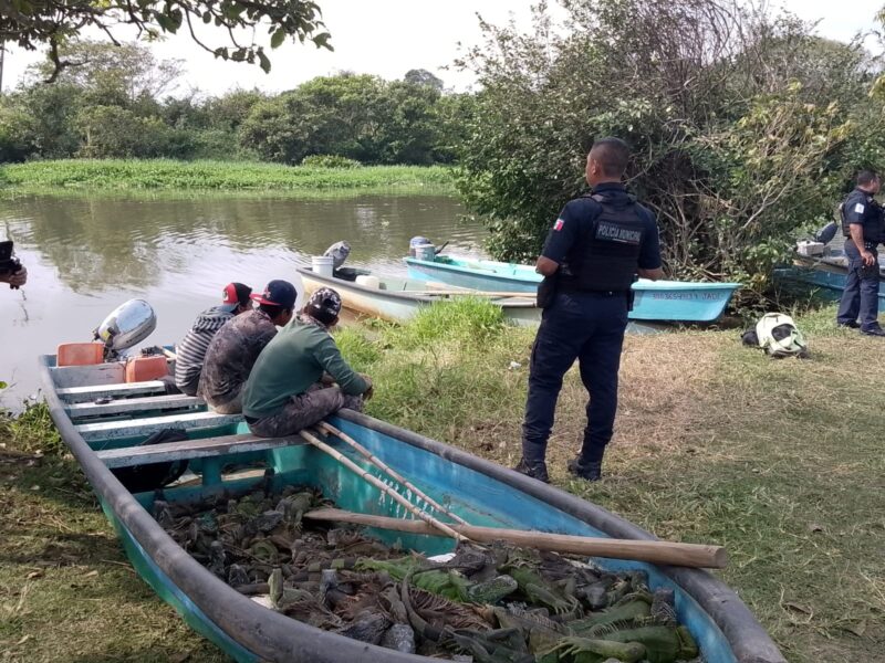 Tres jovenes fueron detenidos en flagrancia, cuando transportaban a bordo de la lancha Kique, 51 iguanas para comercializarlas en el mercado negro de Minatitlán, al sur de Veracruz.