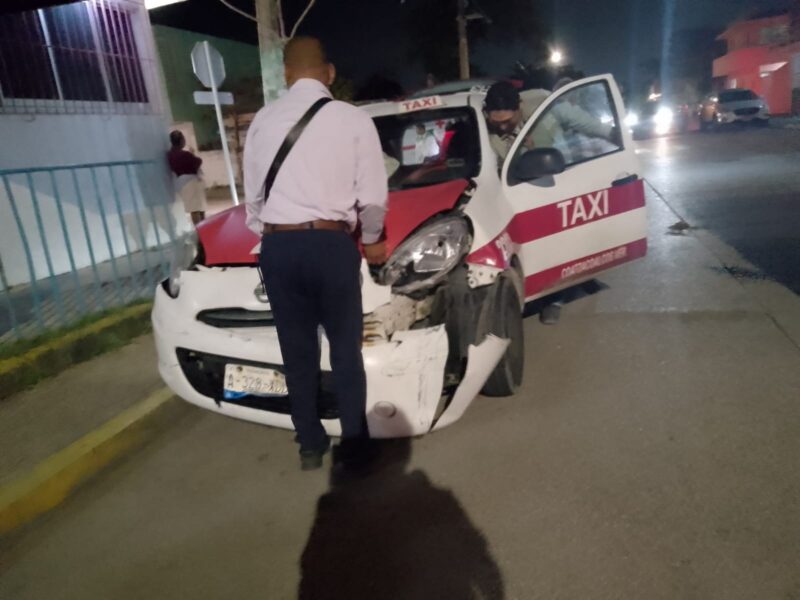Un taxista con sus dos pasajeros lesionados y pérdidas materiales por casi 100 mil pesos, fue el saldo de un accidente automovilisitico, que se registró la noche de este miércoles, en calles de la colonia Puerto México de Coatzacoalcos.