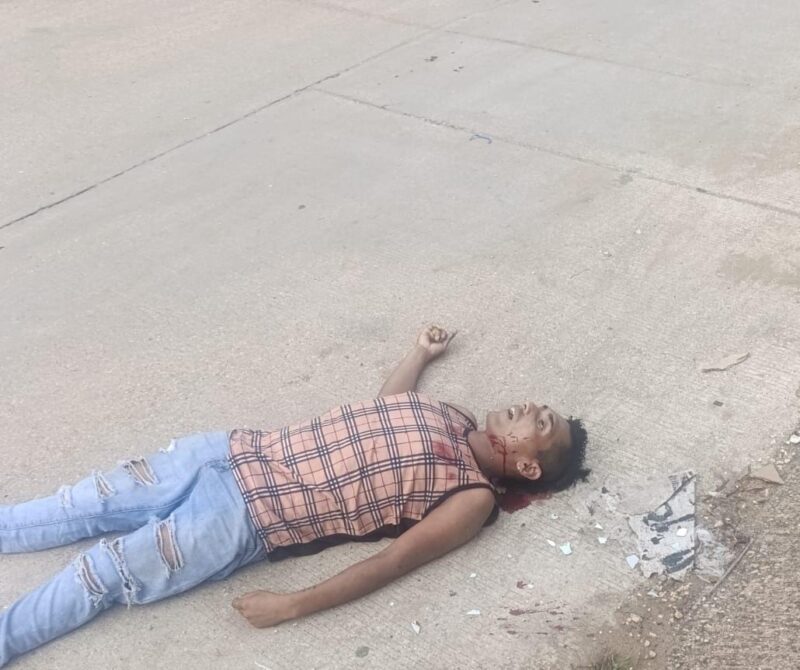 El cadáver de la persona del sexo masculino quedó tendido en la vía pública, vestía un pantalón de mezclilla color azul, camisa a cuadros y tenis rojos, de una edad aproximada de entre 20 a 25 años, los vecinos dijeron haber escuchado cuatro detonaciones.
