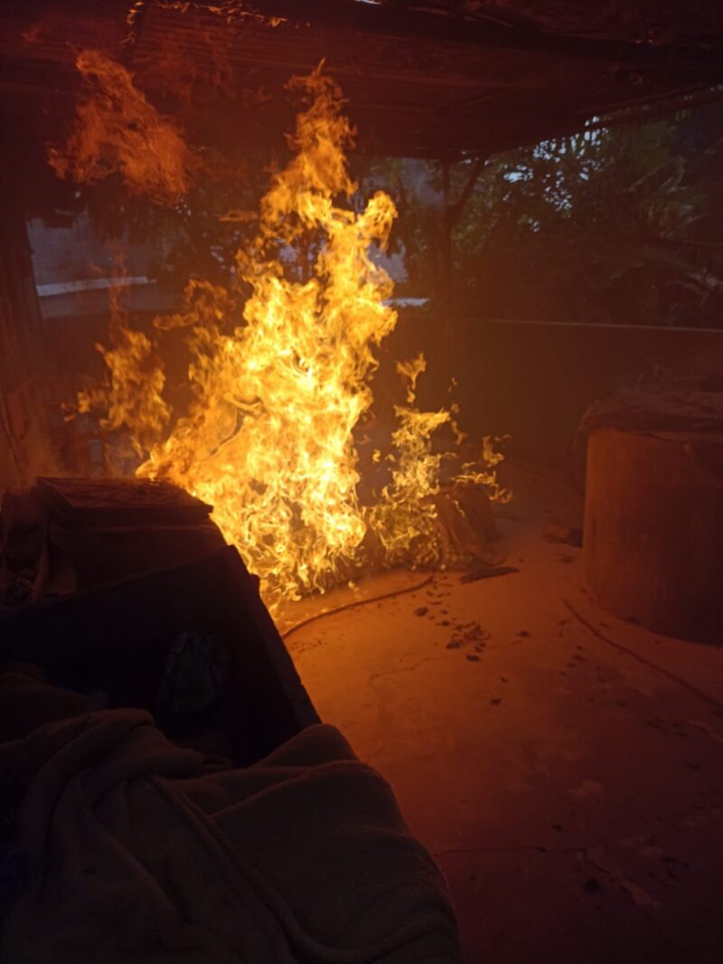 Fue sobre la calle Miguel Hidalgo donde Ofelia Montalvo, propietaria de la vivienda, solicito el apoyo correspondiente al notar como a consecuencia de una presunta fuga de gas su tanque de 30 kilos se incendió.