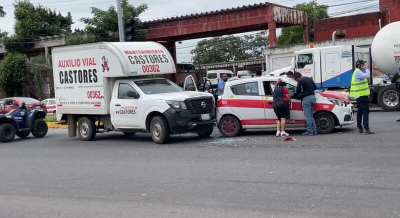El percance se registró en los momentos que el taxi marcado con el número económico 1028 de Minatitlán, fue impactado por una camioneta perteneciente a la empresa de paquetería CASTORES, terminando ambas unidades varadas sobre el bulevar.