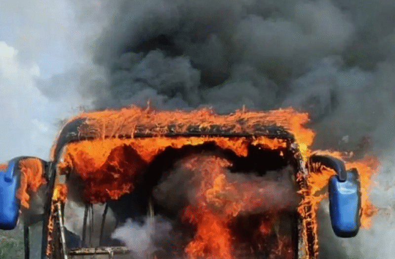 Los conductores de carga Thermokineros informaron que en la zona del accidente se registró cierre de circulación por el incendio de autobús, del cual compartieron imágenes.