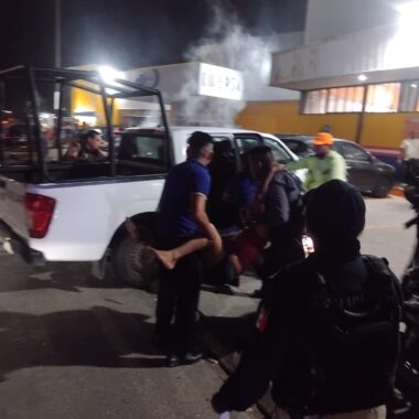 Gravemente lesionado con heridas producidas por arma blanca, resultó un elemento del Instituto de la Policía Auxiliar y Protección Patrimonial del estado (IPAX), quien fue atacado a machetazos dentro de la tienda Dipepsa sucursal Ciudad Olmeca, donde estaba de guardia.