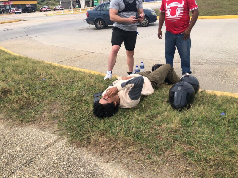 Un masculino lesionados y daños materiales menores, fue el saldo de un accidente entre un automóvil y una loto, que se registró la mañana de este viernes en la colonia El Tesoro, al poniente de Coatzacoalcos.