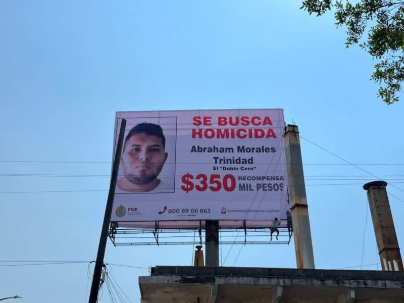 En una acción directa contra los operadores de alto perfil del crimen organizado en Veracruz, el gobierno estatal colocó este martes un espectacular en plena avenida Zaragoza, una de las más transitadas de Coatzacoalcos, con la imagen de Abraham Morales Trinidad, alias “El Doble Cero”, ofreciendo 350 mil pesos de recompensa por información que conduzca a su localización y captura.