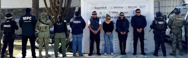 Los detenidos fueron identificados como Hugo N., Atanacio N. y Rocío N., servidores públicos municipales, así como Ana Belem N. De acuerdo con las investigaciones, el 1 de marzo de 2025 habrían participado en el asesinato de dos policías en un inmueble de la colonia Del Valle, como represalia por negarse a colaborar con actividades criminales.