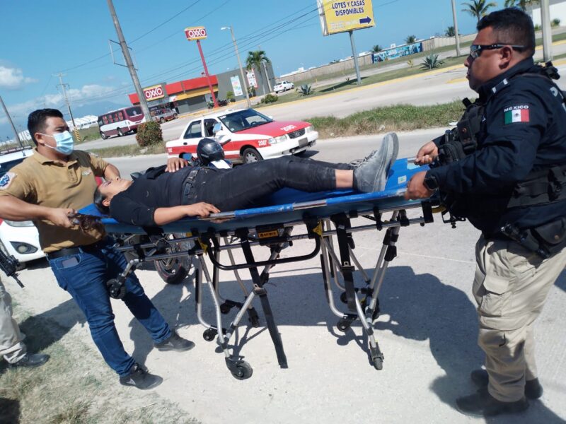 Una pareja de motociclistas, resultaron lesionados al ser embestido por un vehículo fantasma, durante la mañana de este miércoles, frente al fraccionamiento Residencial La Jolla, al poniente de Coatzacoalcos.