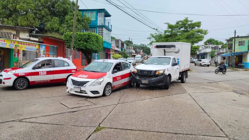Que impactó contra un automóvil marca Nissan, tipo Versa, habilitado como taxi de este puerto, con número 698, placas A-735-XGD del servicio de transporte público local.