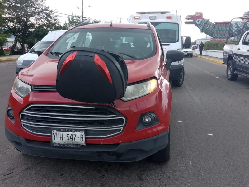 Un masculino lesionado y pérdidas materiales menores, fue el saldo del choque de una camioneta en contra de un motociclista, frente a la colonia El Tesoro, al poniente de Coatzacoalcos.