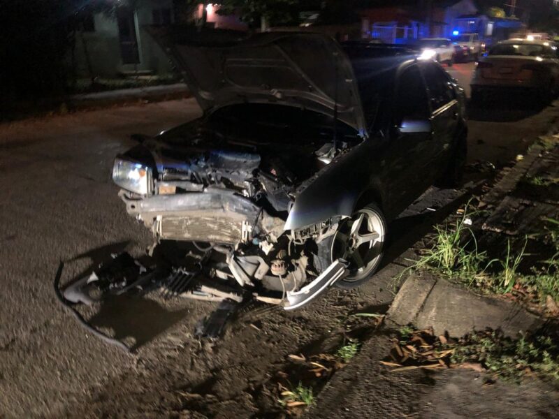 Que chocó contra un automóvil marca Volkswagen, tipo Jetta A4, color gris, con placas YHM-774-A de la misma entidad que estaba estacionada frente a un taller mecánico.