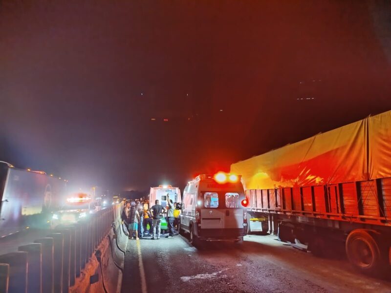 De acuerdo con los primeros reportes, el percance ocurrió cuando el conductor de un tráiler perdió el control de la unidad y terminó impactándose violentamente contra otras tres unidades de carga que se encontraban estacionadas en el área.
