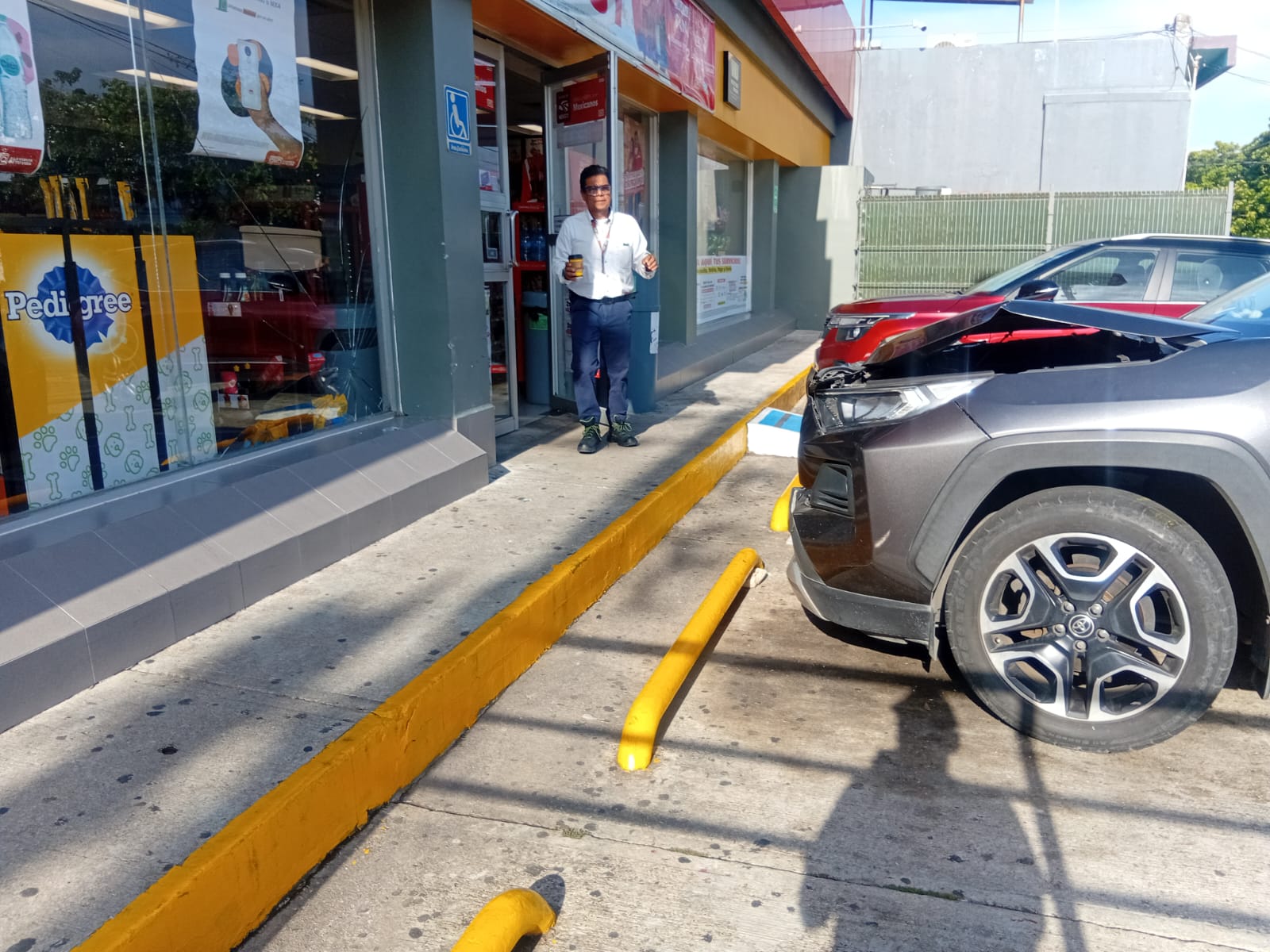 El conductor dijo que solo tocó ligeramente el acelerador y la unidad que momentos antes circulaba de poniente a oriente sobre Juárez, se fue contra uno de los vidrios de la tienda.