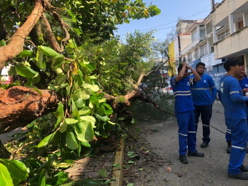 Cayó pino en avenida principal de Coatzacoalcos