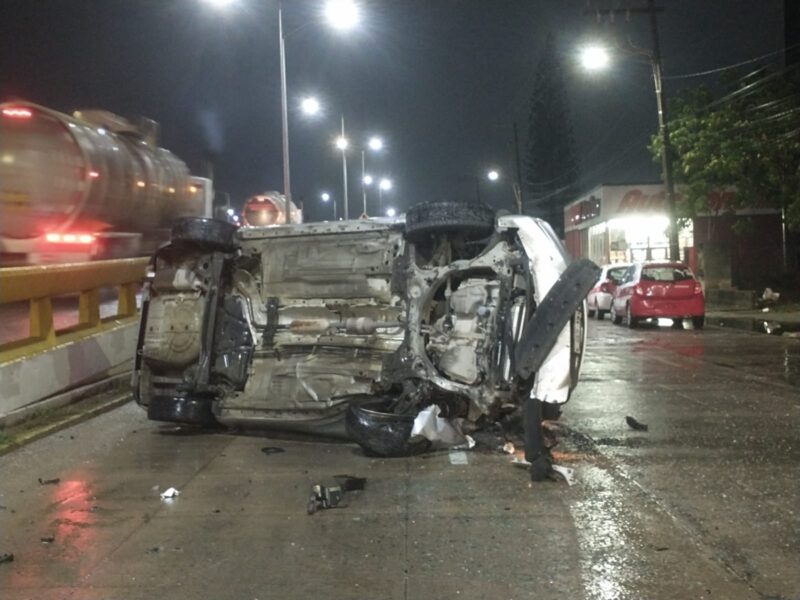 Los hechos ocurrieron alrededor de las 2:45 de la mañana, sobre la carretera Transístmica de la colonia 1 de Mayo, donde el automóvil tripulado por personas en aparente estado etílico, terminó volcado.