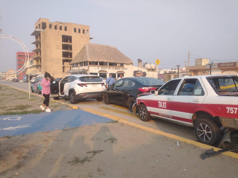 Un taxista y su pasajero lesionados y pérdidas materiales por casi 100 mil pesos, fue el saldo de una carambola de vehículos que se registró la tarde de este miércoles, en calles de la colonia Maria de la Piedad de Coatzacoalcos.