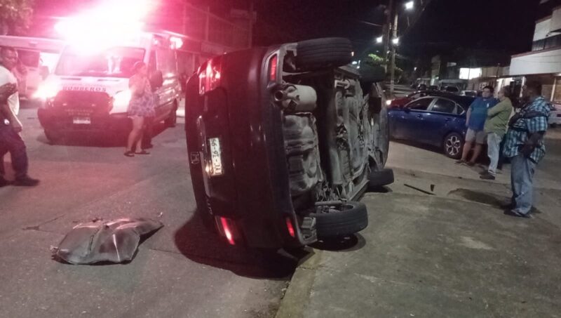 Dos personas lesionadas y pérdidas materiales mayores a los 100 mil pesos, dejó como saldo el aparatoso choque y volcadura de uno de los vehículos involucrados, en calles del centro de Coatzacoalcos.