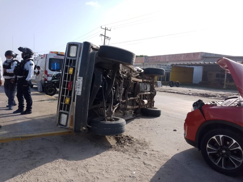 Choque y volcadura frente al hotel Terranova, una mujer resulta lesionada