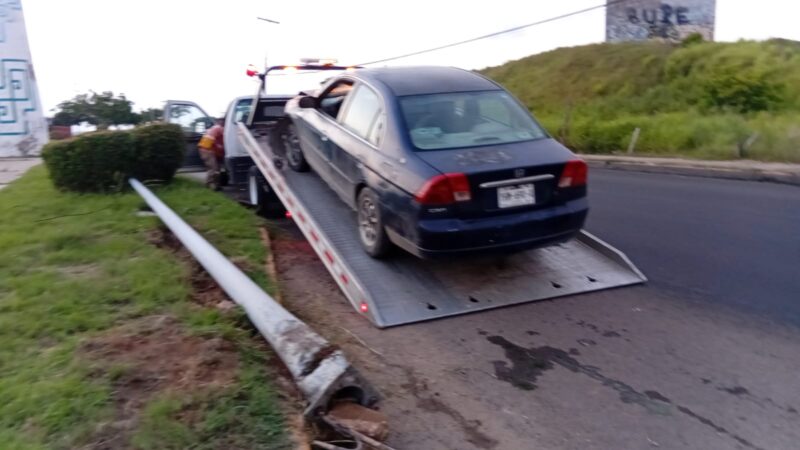 La policía informó que pasadas las 2 de la mañana, personas que viajaban a bordo de un automóvil marca Honda, tipo Civic color azul, con placas YHM-690-A del estado, derribaron la luminaria y dejaron abandonada la unidad.
