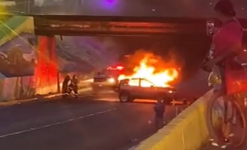 Por el choque entre la Chevrolet tracker y el autobús, la camioneta comenzó a incendiarse mientras la responsable de la accidente, la conductora de la Chevrolet Captiva intentaba darse a la fuga, pero debido al exceso de velocidad perdió el control metros adelante impactándose contra un poste de madera, terminando ahí su carrera.