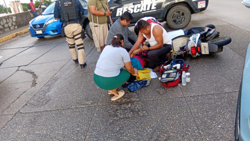 Con fractura expuesta de la pierna derecha, resultó una dama quién fue impactada la motocicleta en la que viajaba, durante la mañana de este jueves.