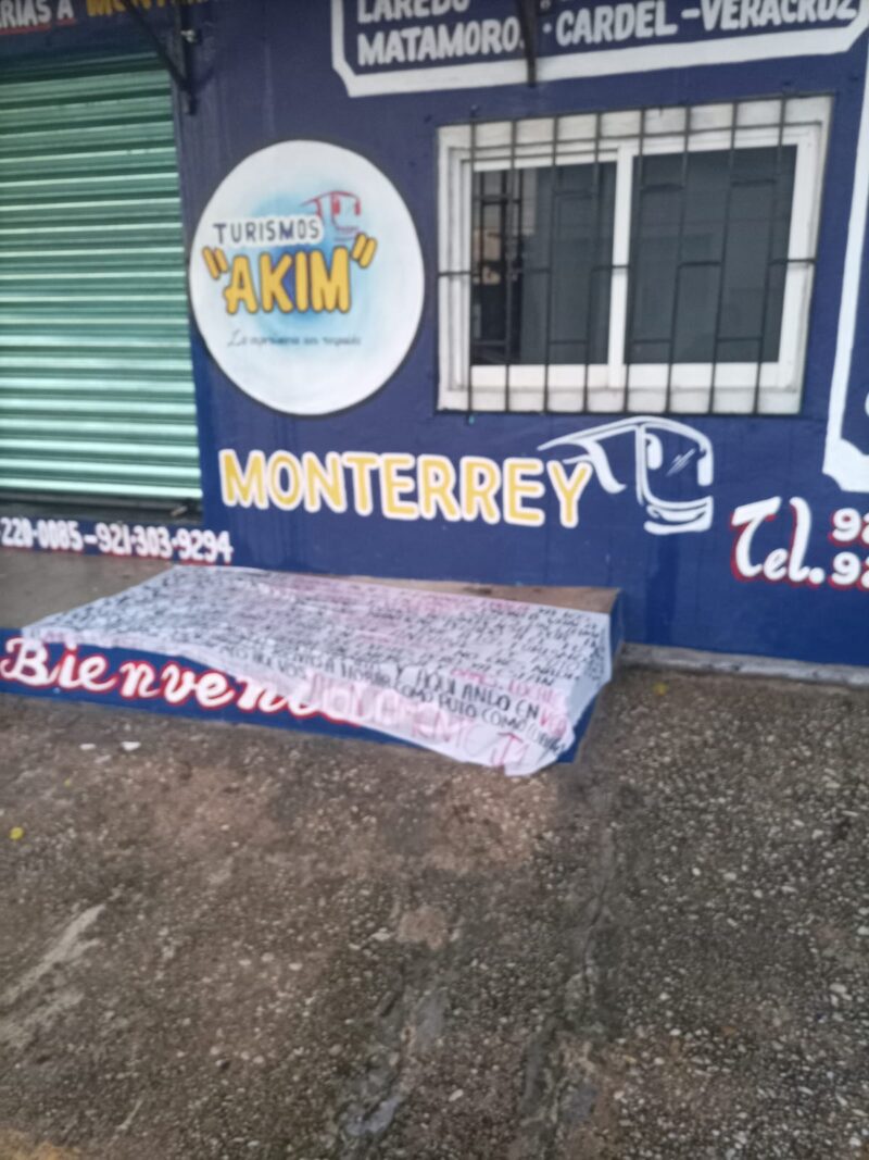 Durante la madrugada de este viernes, personas no identificadas dejaron la advertencia en la entrada al negocio denominado Turismos «Akim» ubicada en Juan Osorio Lopez número 123 de dicha colonia.