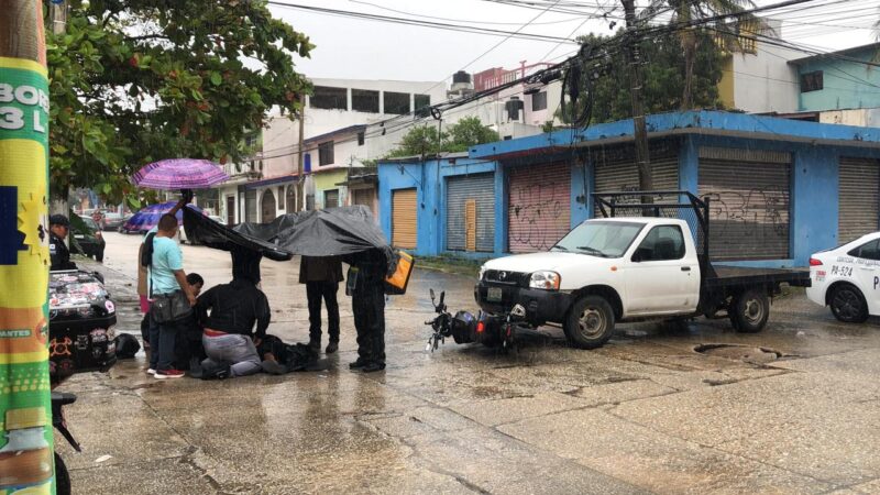 Posteriormente, elementos del grupo Alpha y Omega acudieron para brindarle los primeros auxilios y trasladarlo a un sitio donde no continuara mojándose.