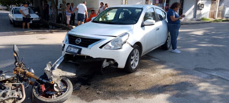Un masculino con golpes y daños materiales cuantiosos, fue el saldo de un choque entre un automóvil particular y una motocicleta, que se registró la mañana de este jueves, en calles de la colonia Santa Isabel de Coatzacoalcos.