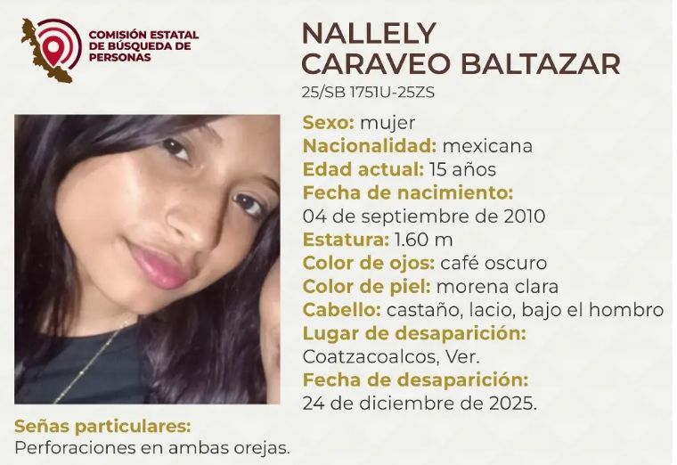 La Comisión Estatal de Búsqueda reportó la desaparición de una menor de 14 años de edad en Coatzacoalcos, al sur del estado de Veracruz.