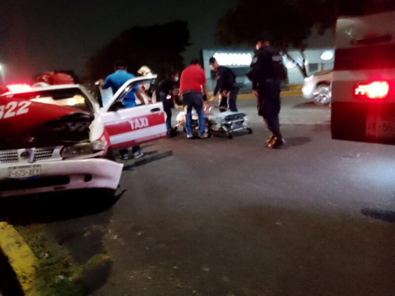 Una pasajera lesionada y daños por más de 35 mil pesos, fue el saldo de un accidente que se registró la noche de este lunes, frente al reloj de la Ford, donde un distraido taxista estampó la unidad que manejaba, contra un poste de alumbrado público propiedad del municipio.