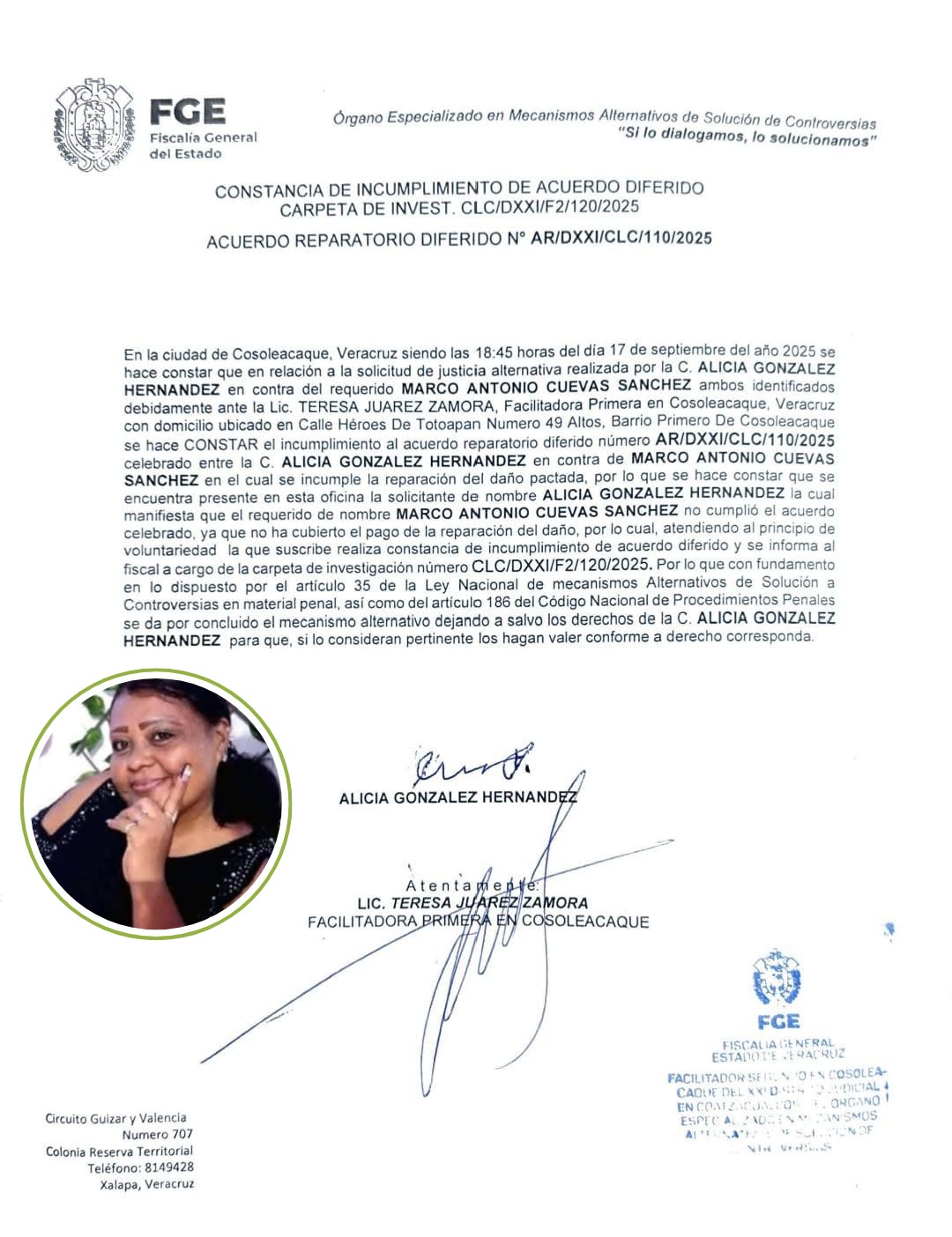 El pago fue programado para el 12 de septiembre, pero los abogados de la empresa solicitaron una prórroga bajo el argumento de que “el cheque venía en camino”. La nueva cita, fijada para el 17 de septiembre, tampoco se cumplió: ADO no se presentó, dejando plantada a doña Alicia, quien con dificultad física, problemas de la vista y apoyada en un bastón tuvo que trasladarse desde Coatzacoalcos.
