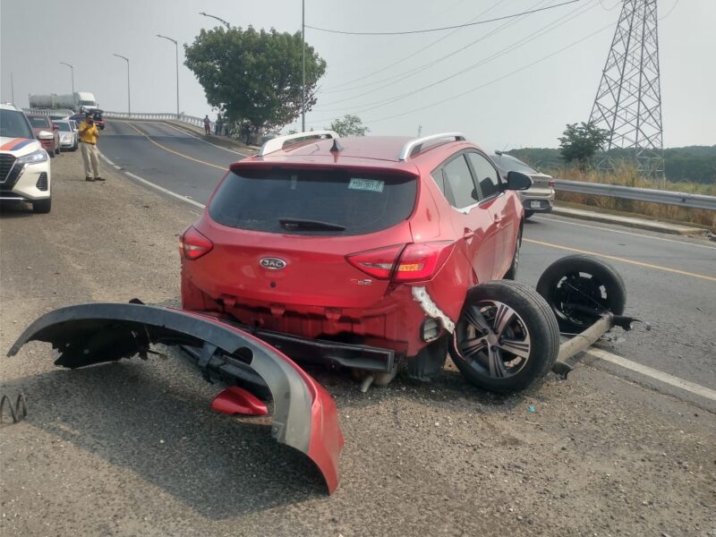 El accidente ocurrió cuando el primer vehículo venía entrando a Coatzacoalcos y al momento de incorporarse al puente Caracol, invadió carril y chocó contra el segundo automotor que iba rumbo a la zona industrial.