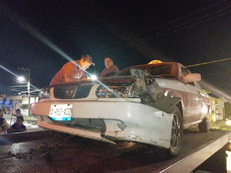 Primero derribó a un motociclista sobre la calle Emiliano Zapata de la Francisco Villa, después le tiro un espejo a otro taxi, para después chocar por alcancé a un automóvil marca Volkswagen, tipo Pointer, color rojo, con placas del estado de Chiapas.