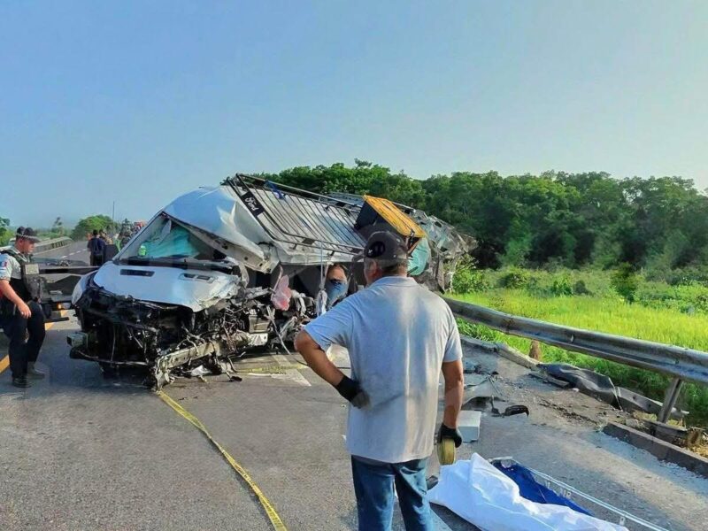 El siniestro ocurrió alrededor de las 04:30 horas, cuando un camión de carga tipo caja cerrada, que circulaba con dirección al sur, invadió presuntamente el carril contrario y se impactó de frente contra una camioneta Ford Transit blanca, con placas SXZ123A, en la que viajaban al menos ocho personas provenientes del norte del país y con destino a la caseta de Los Gil.