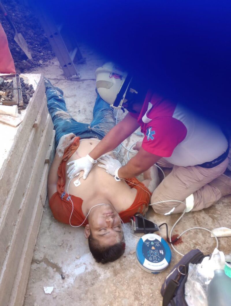 Fueron paramédicos de protección civil quienes atendieron a Luis Gerardo Pérez, con domicilio en el municipio de Oteapan, el sujeto que se encontraba trabajando sobre la calle Miguel Hidalgo en el barrio primero cuando sufrió el trágico accidente que en un principio lo dejó con severas lesiones e inconsciente.