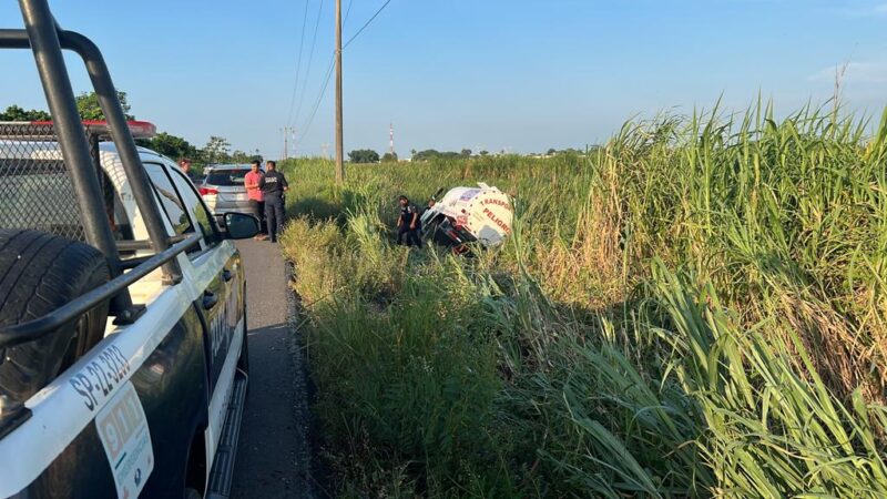 Una pipa utilizada para transportar combustible, se salió del camino minutos antes del anochecer de éste miércoles, cuando era guiada sobre la carretera Mina-Coatza, por el sector de Las Matas.
